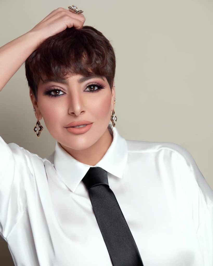 إن كنتِ من محبات تصفيفة الشعر القصير ذات الطبقات المتدرجة بغرة جانبية طويلة على الوجه نفسه، ننصحك باعتماد تصفيفة الفنانة هند البلوشي، والتي اعتمدتها لسنوات كثيرة، ولاقت بها جدًا، ويمكن أن يتم قصّها بشكل طبقات من الشعر القصير متدرجة الأطوال من الخلف.