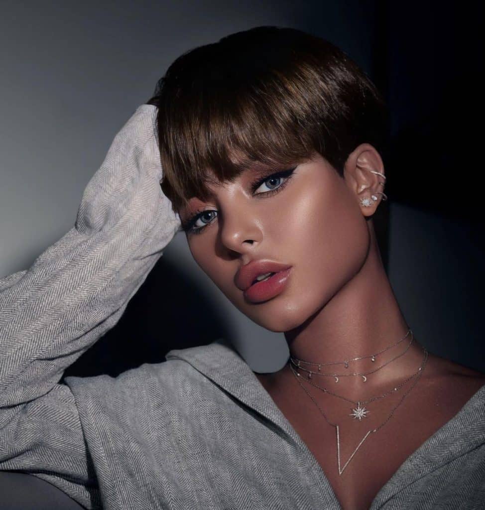 لتكوني جميلة ومتألقة على الدوام، تمتلكين إطلالة أكثر حيوية وشبابًا بتصفيفة شعر عصرية وناعمة، يمكنك اختيار تلك التصفيفة بالشعر القصير من وحي مدونة الموضة غدير سلطان، والتي اعتمدتها بأسلوبها الخاص مع الغرة القصيرة الكثيفة على الجبين وقصّ الشعر بطريقة البيكسي من الخلف، تضمن لك تلك التسريحة إطلالة عصرية جمالية ناعمة بامتياز.