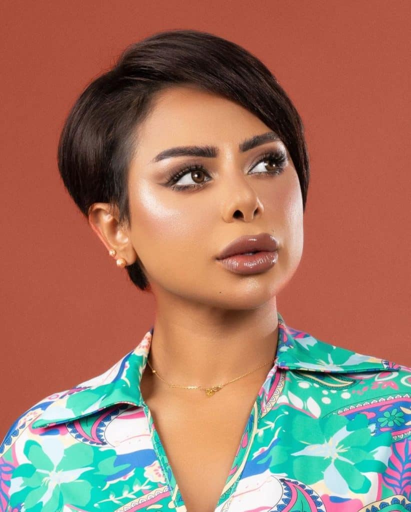 تسريحة شعر قصيرة بغرة جانبية بأسلوب هند البلوشي