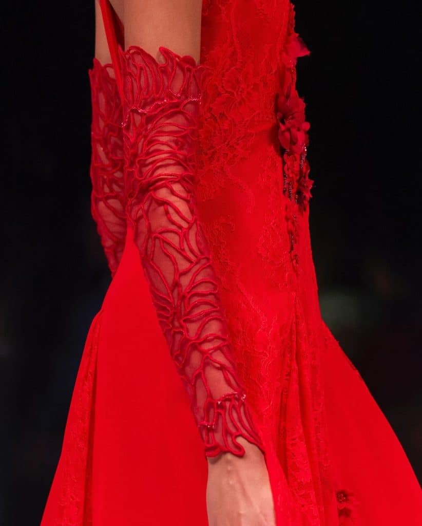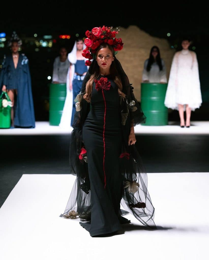 كذلك، اختتمت النجمة المصرية نيللي كريم العرض والتي كانت بمثابة مفاجأة العرض. اعتمدت فستانًا باللون الأسود وعباية على شكل كاب، وزيّنت بتاجًا من الورود باللون الأحمر.