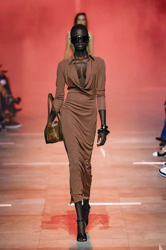 التطريز بالكريستال والخرز أُدمج برفق في بعضها، ليضيف لمسة بريق من دون الإفراط. في بعض الحالات، استخدم المصمم عناصر مفاجئة مثل الدنيم المطرز ضمن فساتين السهرة الفخمة، ما أعطى تركيبة غير متوقعة بين الكاجوال والرفاهية.