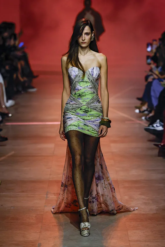 عند عرض مجموعة إيلي صعب لربيع وصيف 2025 على المنصّة، بدا الأمر وكأن العرض ينقلك إلى غابة أسطورية مضاءة برقة، حيث تتحرك النماذج كأنها نساء الطبيعة ذاتها.