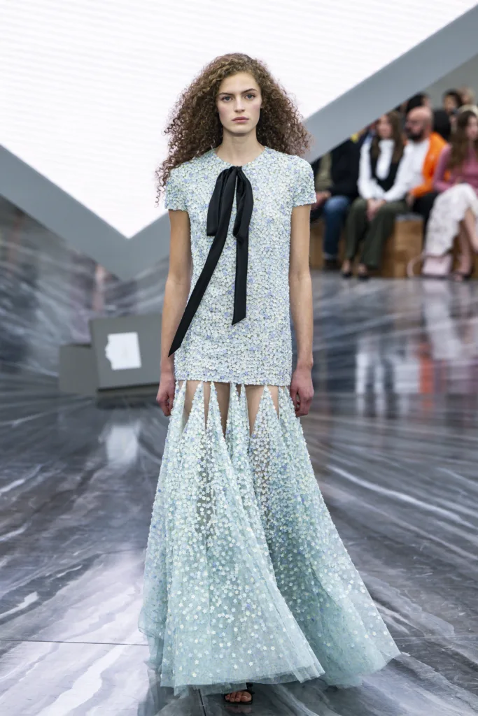 بدأ العرض – الذي كان من أكثر الأيام ترقبًا خلال أسبوع الموضة في باريس – بفيلمٍ قصير من إخراج البريطاني آدم كورتس، أدخلنا حرفيًا إلى أعماق عقل جوناثان الباطن. جاءت المشاهد على هيئة لقطات لمؤسس الدار الراحل السيد كريستيان ديور، ولأجمل ما قدم من فساتين فاتنة، إلى جانب مقاطع توثق أهم محطات الدار وكل مدير إبداعي تولى قيادتها عبر السنوات، مع لمحات تُبرز تطوّر تصميمات ديور عبر العصور.