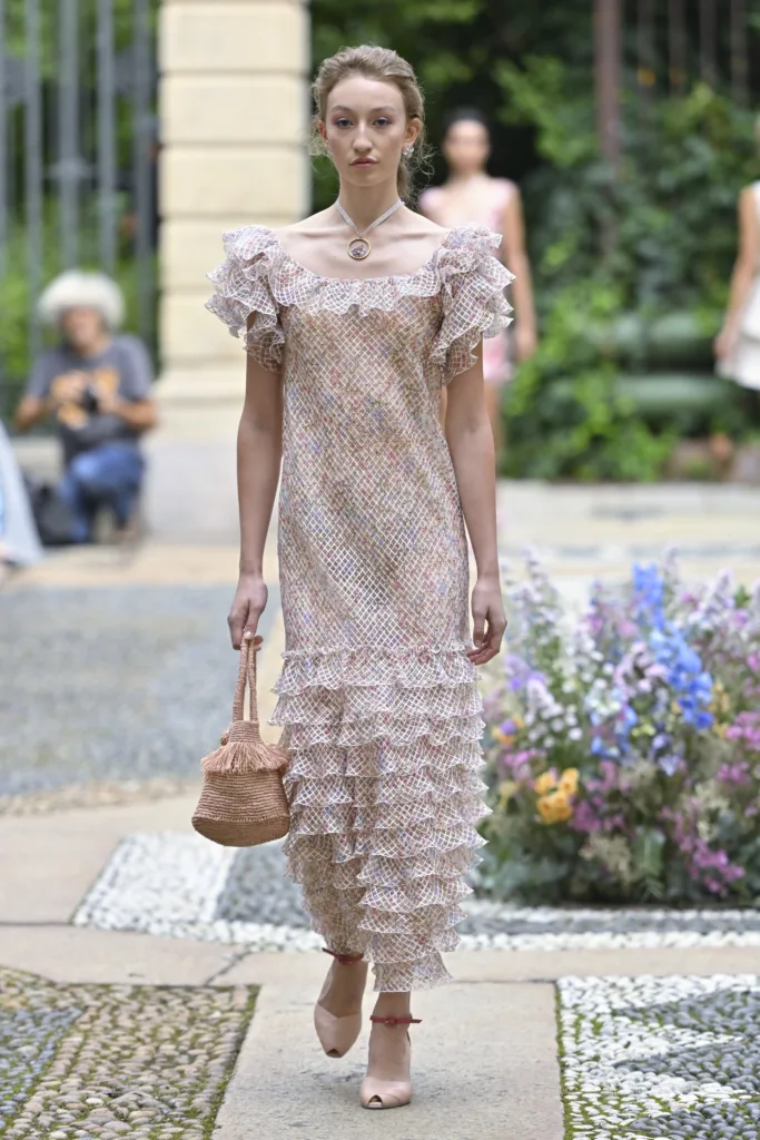 شكر وتقدير للمصممة لويزا بيكاريا التي غردت خارج السرب، وقدمت مجموعة نسائية حالمة فيها فساتين السهرة، قطع يومية أنثوية ناعمة بنقوشات الزهور وألوان الباستل.