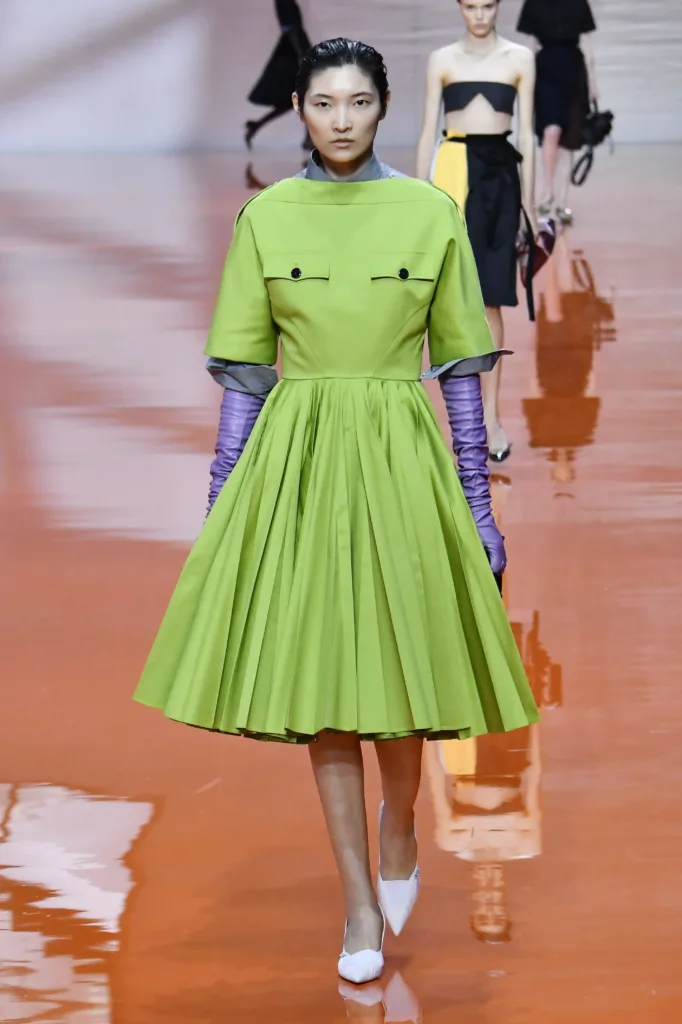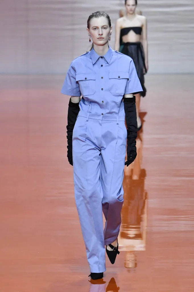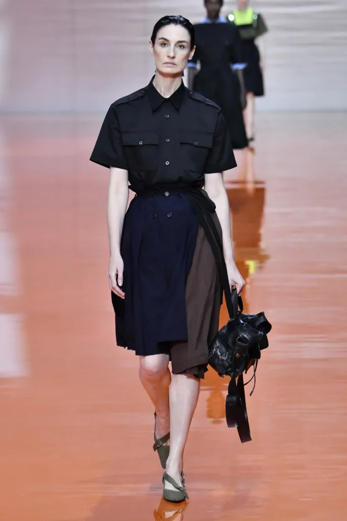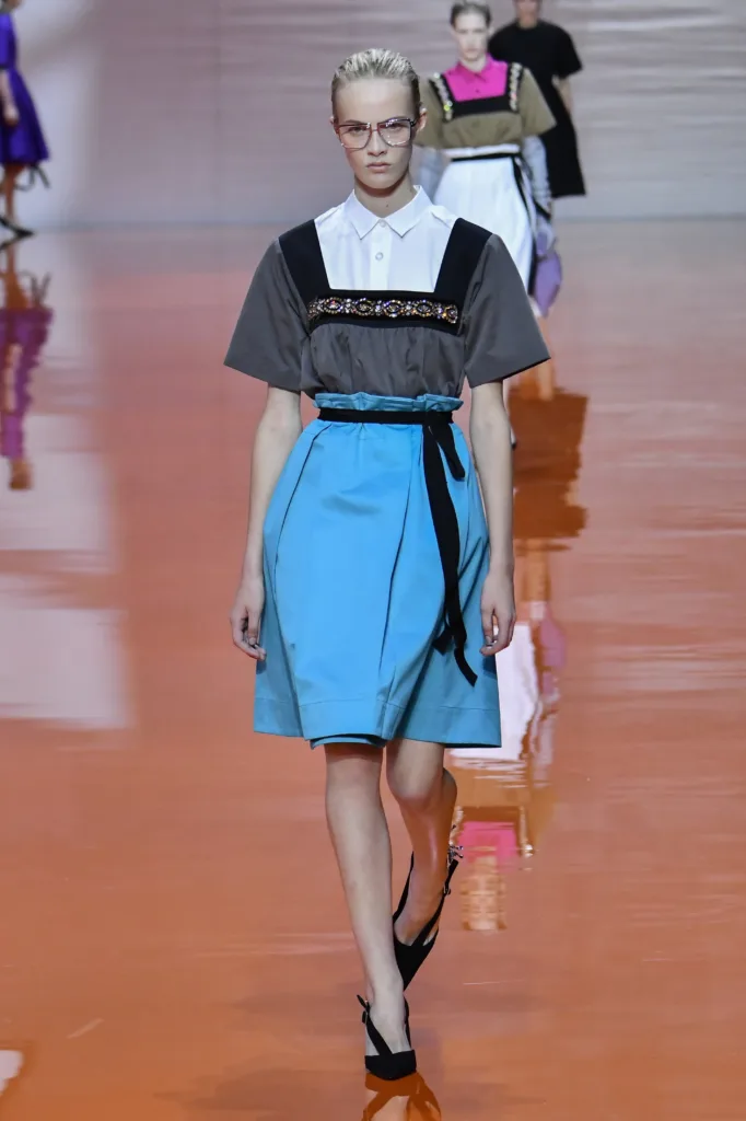جورجيو الذي عرضت داره أخر تصاميمه، وجميع المدير الإبداعيين الجدد، قدموا لنا عودة قوية للبدلة الرسمية النسائية، أن نرتدي وكأننا ذاهبين للعمل. كما لو أن الرأسمالية قد احتدت نيابها على الصيف. إذا تصفحتم صور التصميمات، ستجدون الملابس الأساسية للخزانة هي بطلة المشهد، حيث الفساتين مستقيمة القصة بجميع الأطوال:(قصير، ميدي، طويل). القمصان والبلايز ذات الألوان المحايدة، والبنطال الطويل الواسع منخفض الخصر. اهتمت برادا بالتنانير الميدي، عكس موسكينو التي صبت تركيزها على الفساتين.