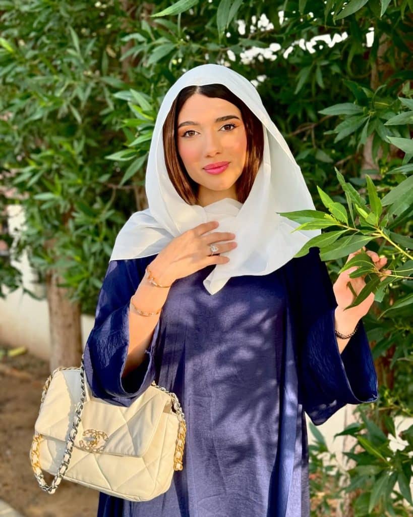 كثيرًا ما نلاحظ ظهور نارين بوشاح أبيض على الرأس، فهي تحب هذه الطلة وتبدو جميلة بها في كل مرة، حيث تترك الوشاح ملتفًا بنعومة حول رأسها مما يزيدها بهاءً ورقة.