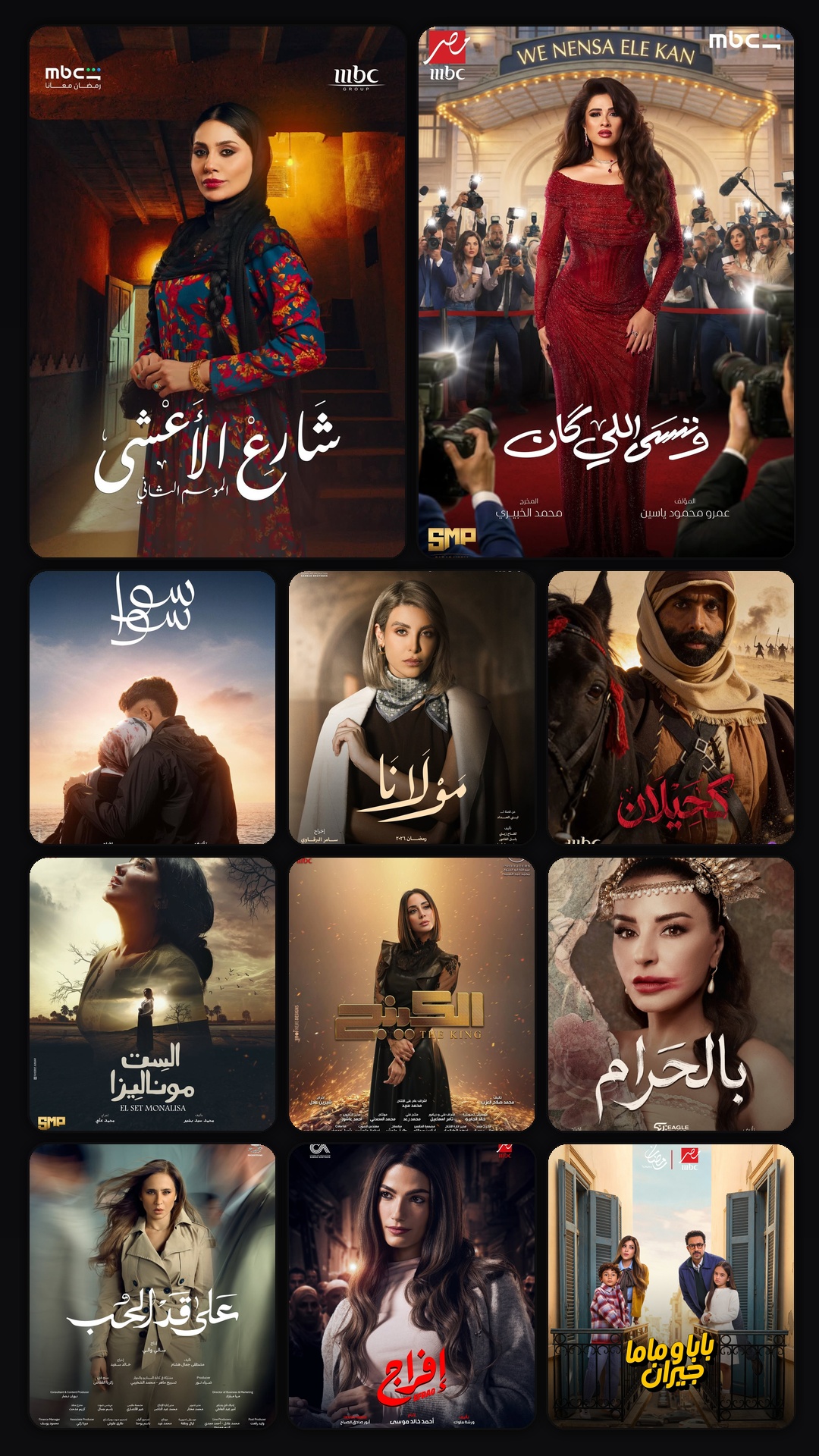 اسم المسلسل مطبخ المدينة مولانا بخمس أرواح بالحرام لوبي الغرام محافظة 15 أنا وهي وهيا سعادة المجنون النويلاتي بنت النعمان اليتيم قيصر المليئية: لعنة حب شمس الأصيل المستور تحت الأرض الموسم 2 : جرد حساب تحت الصفر ما اختلفنا الموسم 3 السوريون الأعداء بيت الأحلام عشق بدوي عيلة الملك الحريقة سر وقدر الخروج إلى البئر
