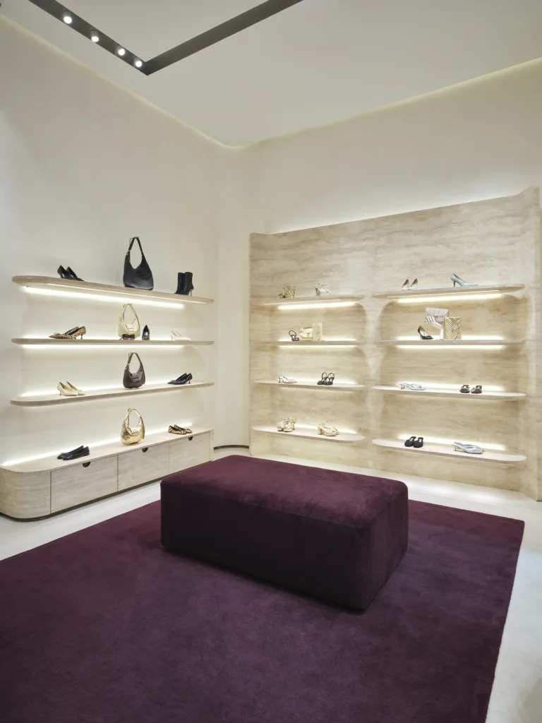 تعكس إعادة تصميم بوتيك جيمي شو في دبي مول تطور الهوية الجمالية للدار، لتصبح المساحة مرآة للروح المعاصرة التي تجمع بين البساطة والرقي. صُممت الأجواء لتكون امتدادًا لعالم الدار الذي يحتفي بالأناقة الحديثة والحرفية الرفيعة، في مزيج متناغم من الفن والترف.
