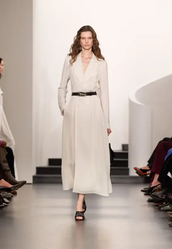 الأقمشة الناعمة التي تمنحك الحركة الدرامية هي ما صُممت منه المجموعة، التي برزت فيها الفساتين الطويلة الفضفاضة والبلوزات الطويلة التي قد تتحول إلى فستان ميدي، مع البنطال قصير الوسط واسع الساقين. تتبنى المجموعة أيضًا الزخارف والنقوشات فالتركيز ليس فقط على الثلاثة ألوان. فهناك طبعات الزهور ذات الظهور الطفيف، وتأليمات الأبيض والأسود التي ظهرت بقوة.