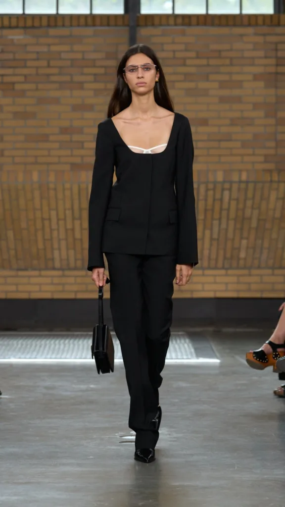 الحقائب جاءت بتصاميم عملية وأنيقة في آن واحد، فظهرت الحقائب الصغيرة ذات الأشكال الهندسية البسيطة لتمنح الإطلالة لمسة عصرية تناسب تنقلات النهار، بينما عُرضت حقائب كتف أكبر حجمًا لتواكب احتياجات المرأة العملية. أما الأحذية فتنوعت بين الموديلات الجلدية المسطحة التي تتيح راحة تامة خلال اليوم، والصنادل ذات الكعب المتوسط التي أضفت لمسة أنثوية راقية دون أن تفقد الطابع العملي للمجموعة. هذه الاختيارات أكدت على التوازن بين الجاذبية والوظيفة، وهو ما يعكس روح كالفين كلاين في صياغة أزياء تناسب إيقاع الحياة الحديثة.