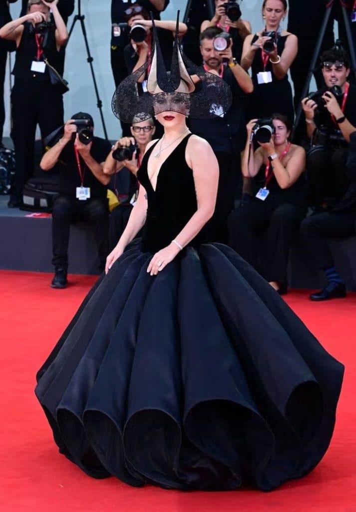 ظهرت ليدي غاغا في مهرجان البندقية السينمائي 2024 بمناسبة عرض فيلمها الجديد، متألقة بفستان من ديور للأزياء الراقية. تميز الفستان بالقسم الأعلى بكونه مصنوع من المخمل، المرفق بتنورة ضخمة من الحرير والمخمل ذات الخصر المنخفض، مما أضفى عليها لمسة ساحرة على الإطلالة.