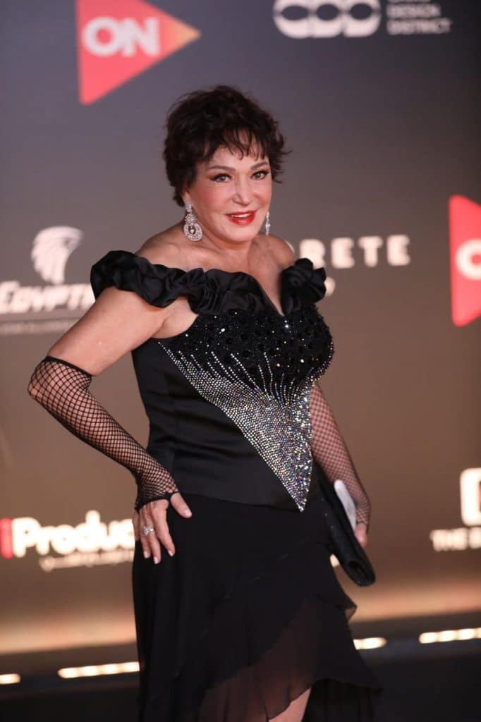 اختارت لبلبة فستان أسود قصير من الأمام وطويل من الخلف ونسّقته مع قفّازات. لمسة جريئة أليس كذلك؟