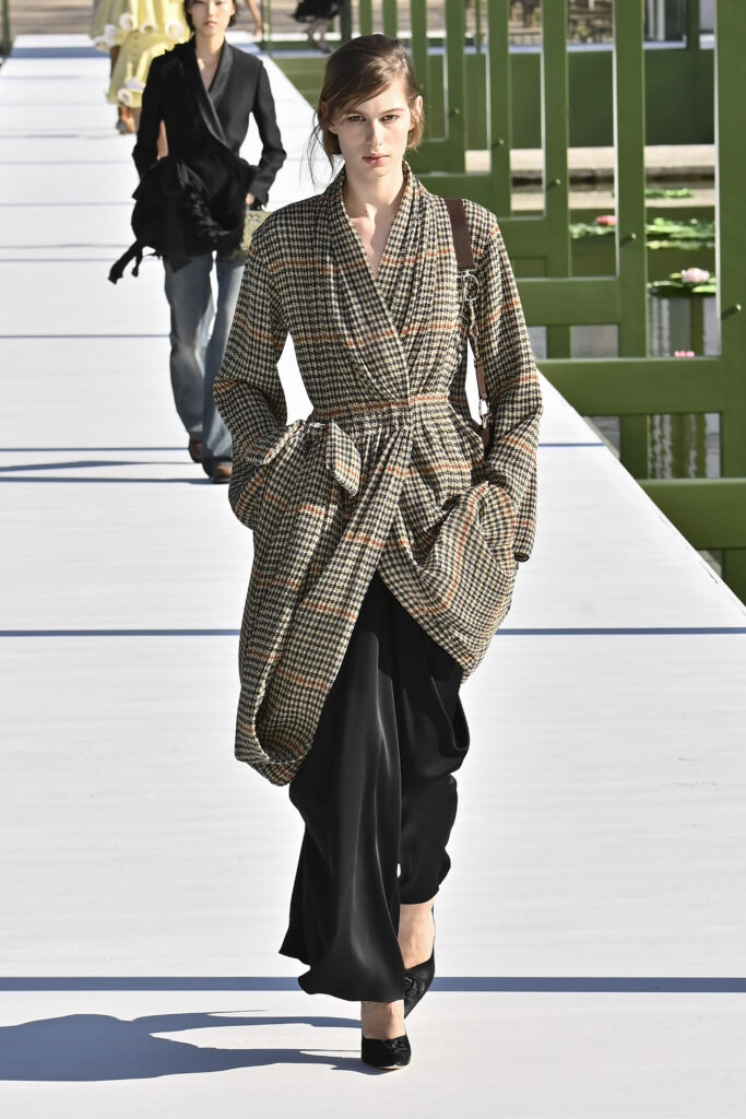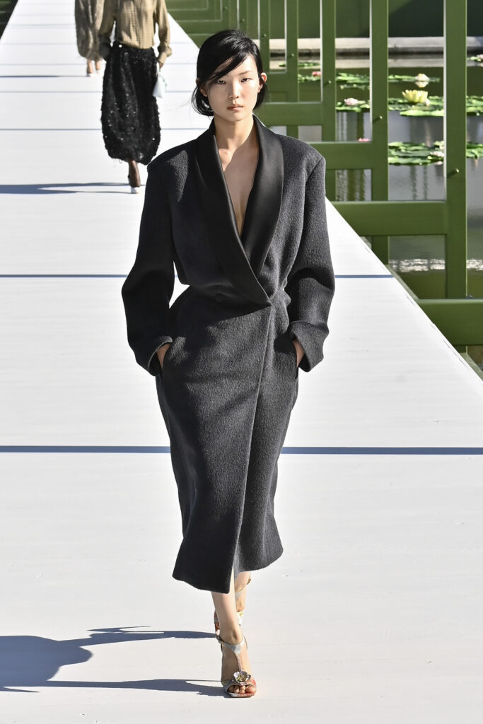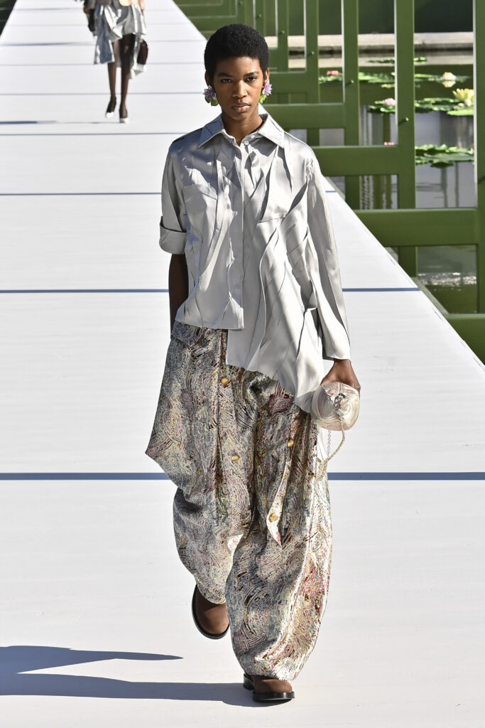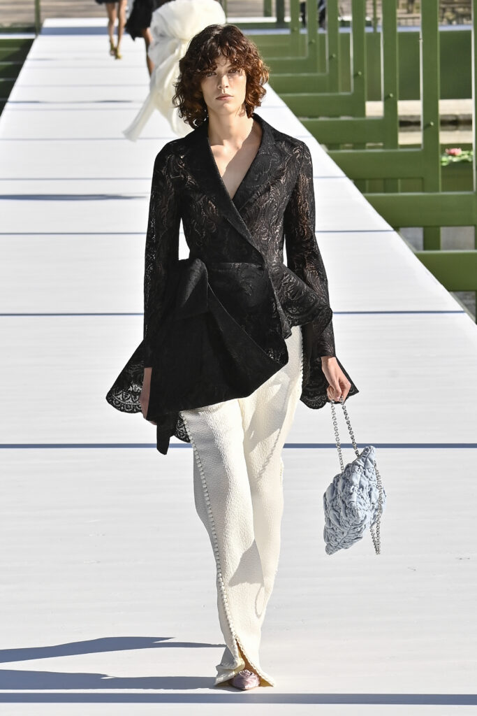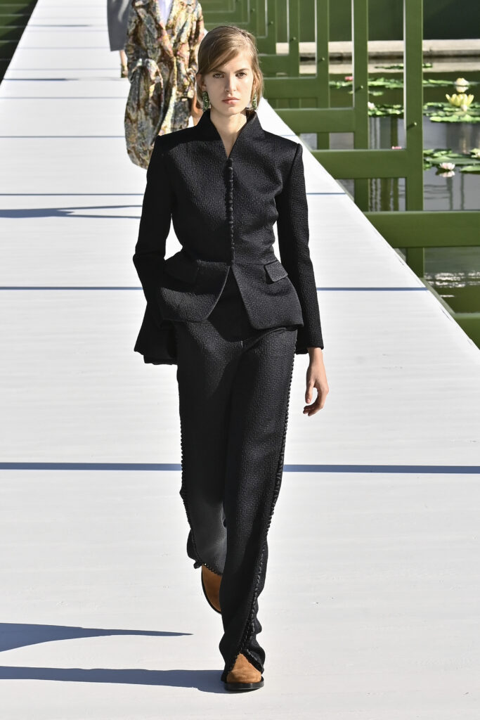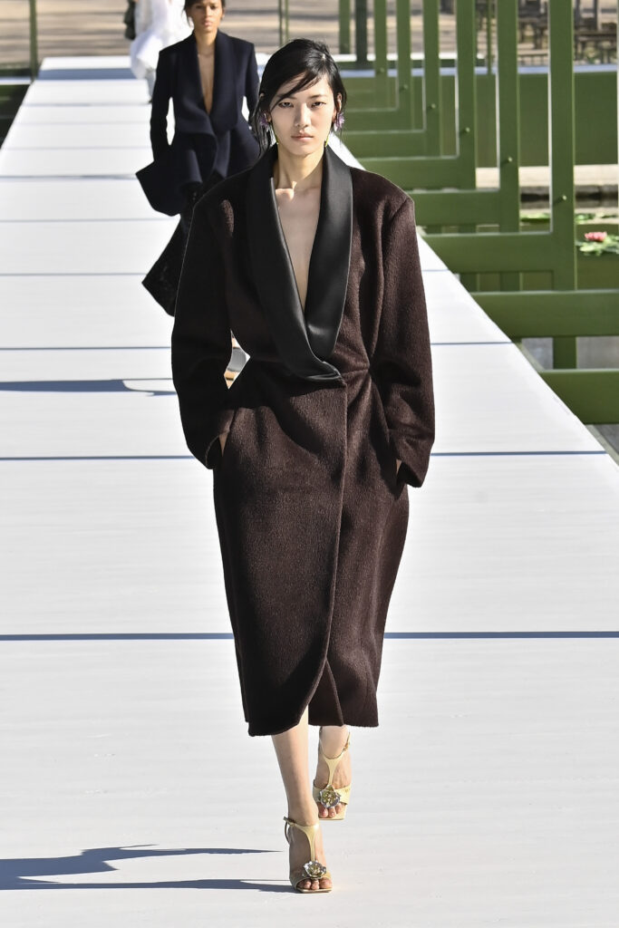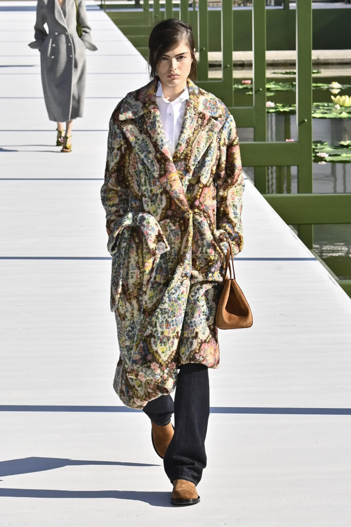 وجاءت الفساتين دراميةً وفضفاضة، أما السراويل فأحيت إحدى صيحات الأعوام الماضية “بنطال الخياطة الراقية”، مع تطريزٍ لامع يمنح الإطلالة روحًا احتفالية في عز النهار. وتلك بالفعل رسالة المجموعة أن الأزهار المنعشة قادرة دائمًا على إبهار الجميع، حتى في قلب الشتاء والصقيع.
