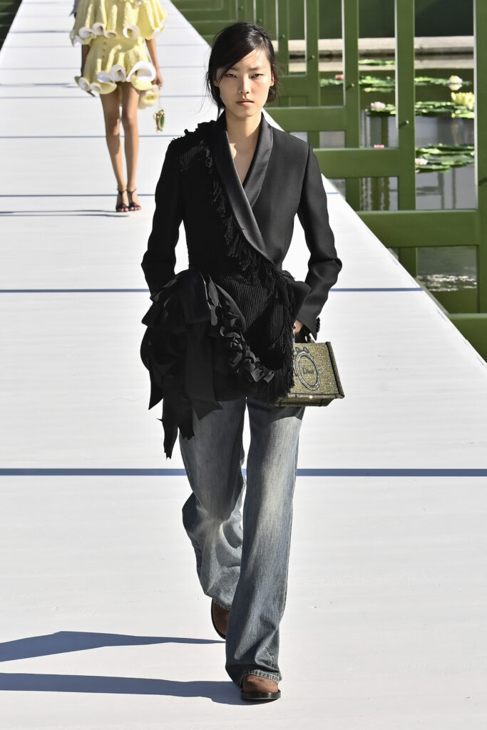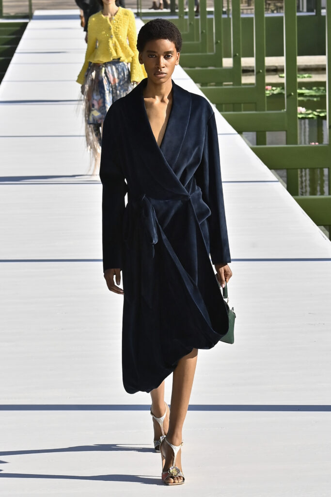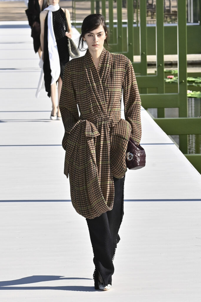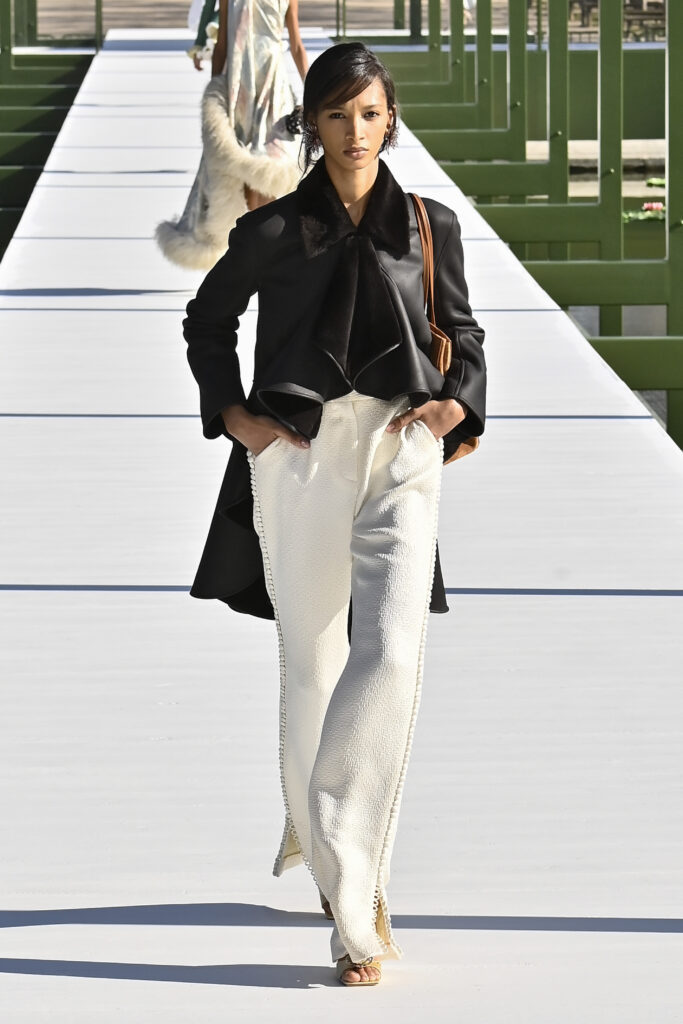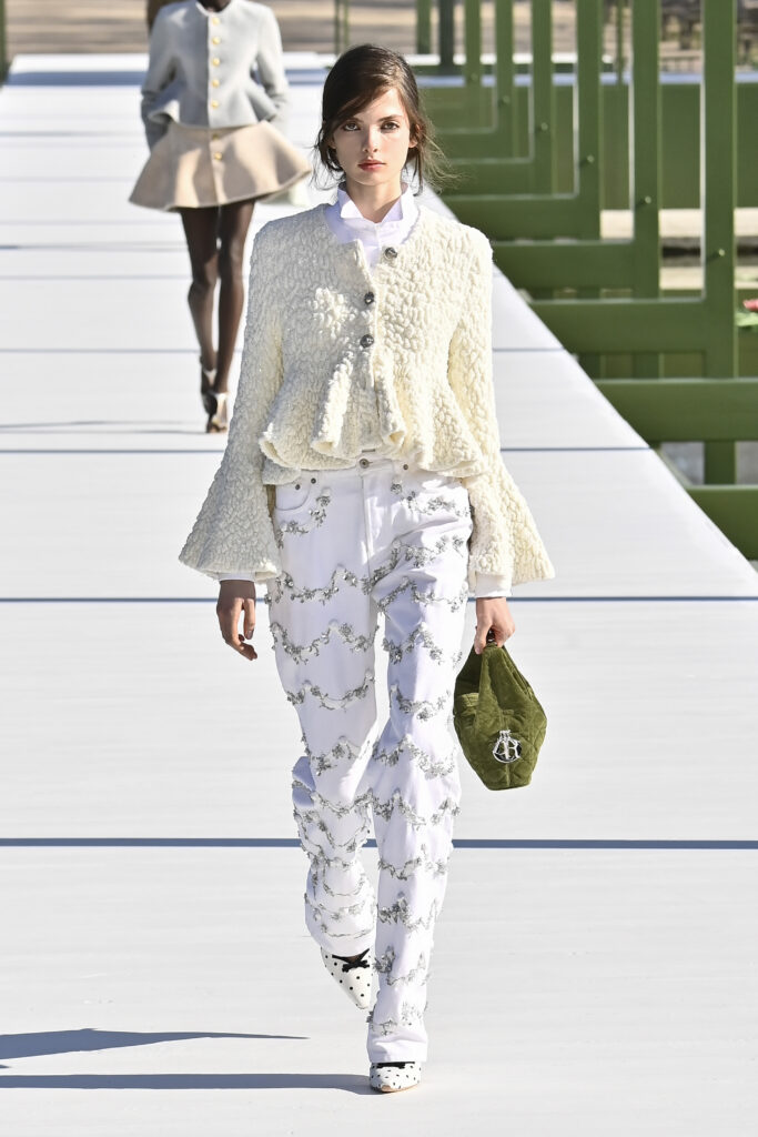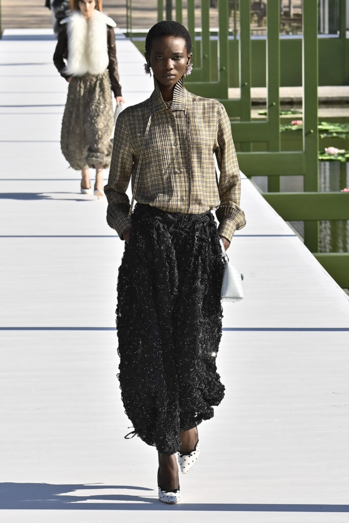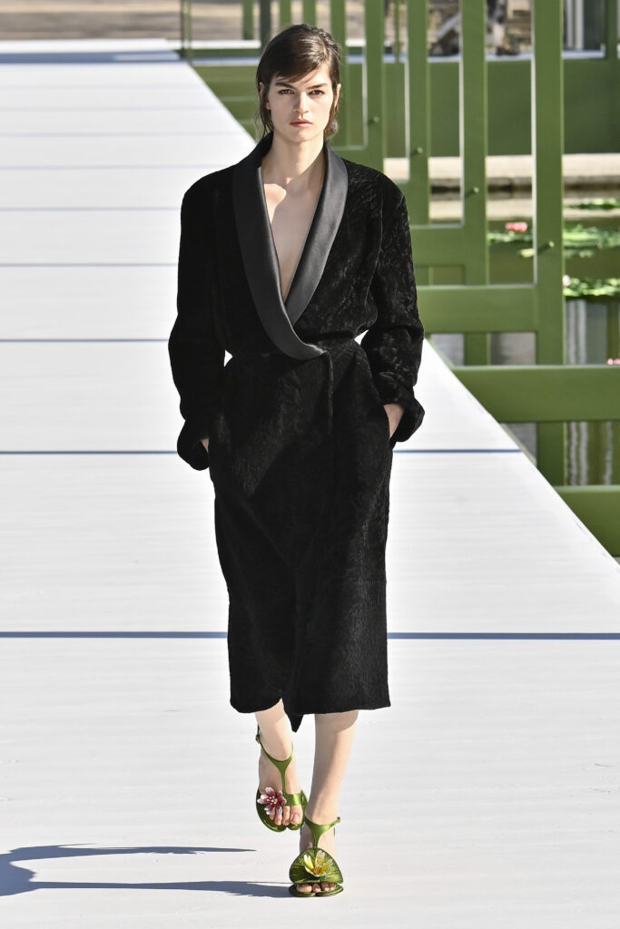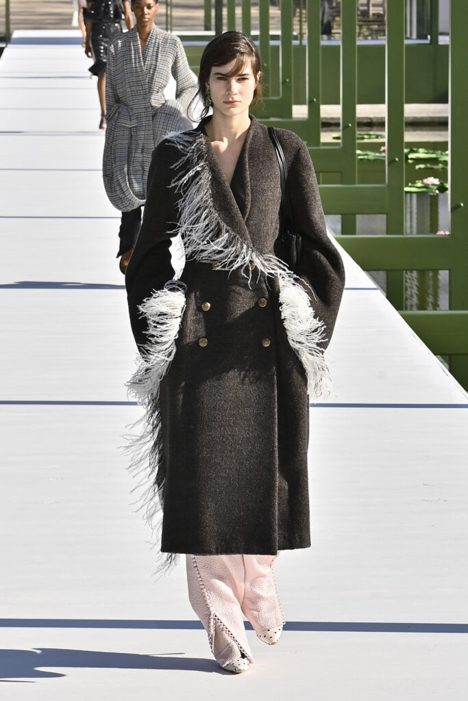 وجاءت الفساتين دراميةً وفضفاضة، أما السراويل فأحيت إحدى صيحات الأعوام الماضية “بنطال الخياطة الراقية”، مع تطريزٍ لامع يمنح الإطلالة روحًا احتفالية في عز النهار. وتلك بالفعل رسالة المجموعة أن الأزهار المنعشة قادرة دائمًا على إبهار الجميع، حتى في قلب الشتاء والصقيع.