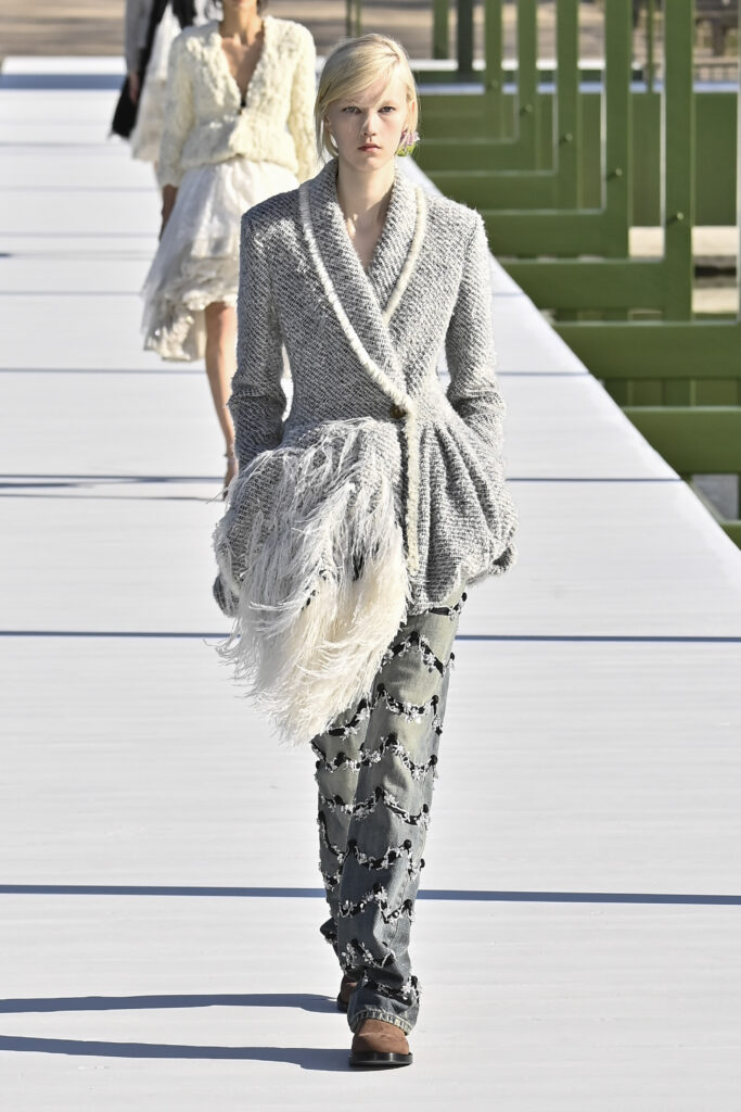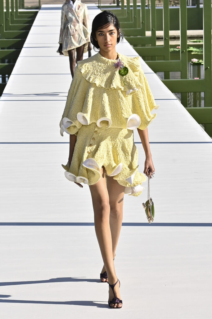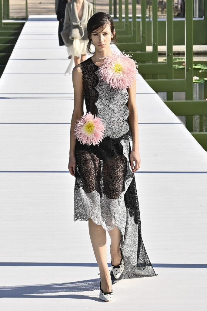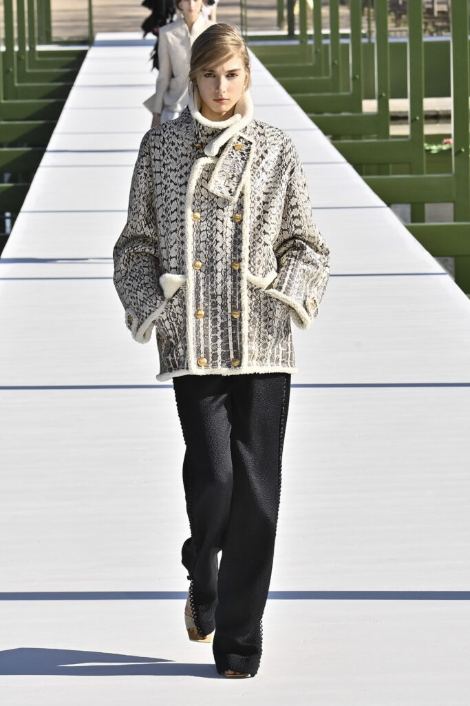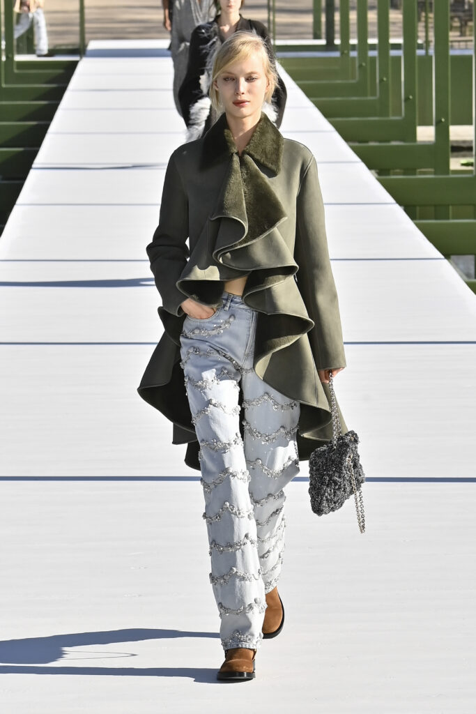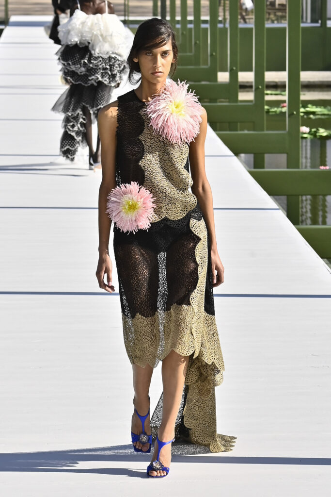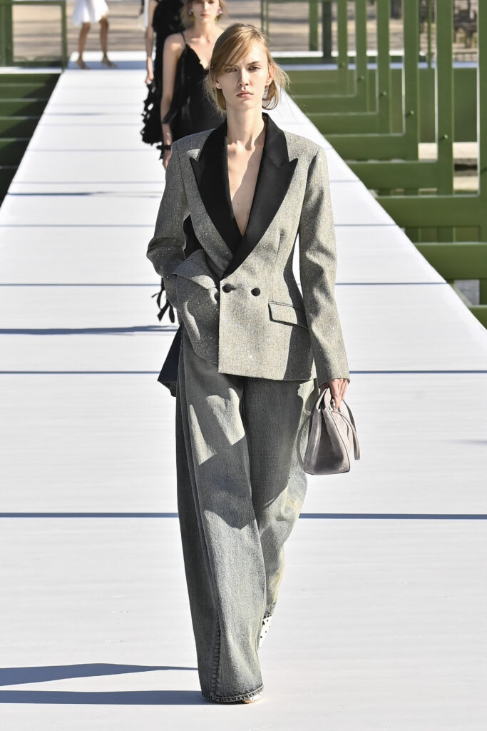 وجاءت الفساتين دراميةً وفضفاضة، أما السراويل فأحيت إحدى صيحات الأعوام الماضية “بنطال الخياطة الراقية”، مع تطريزٍ لامع يمنح الإطلالة روحًا احتفالية في عز النهار. وتلك بالفعل رسالة المجموعة أن الأزهار المنعشة قادرة دائمًا على إبهار الجميع، حتى في قلب الشتاء والصقيع.