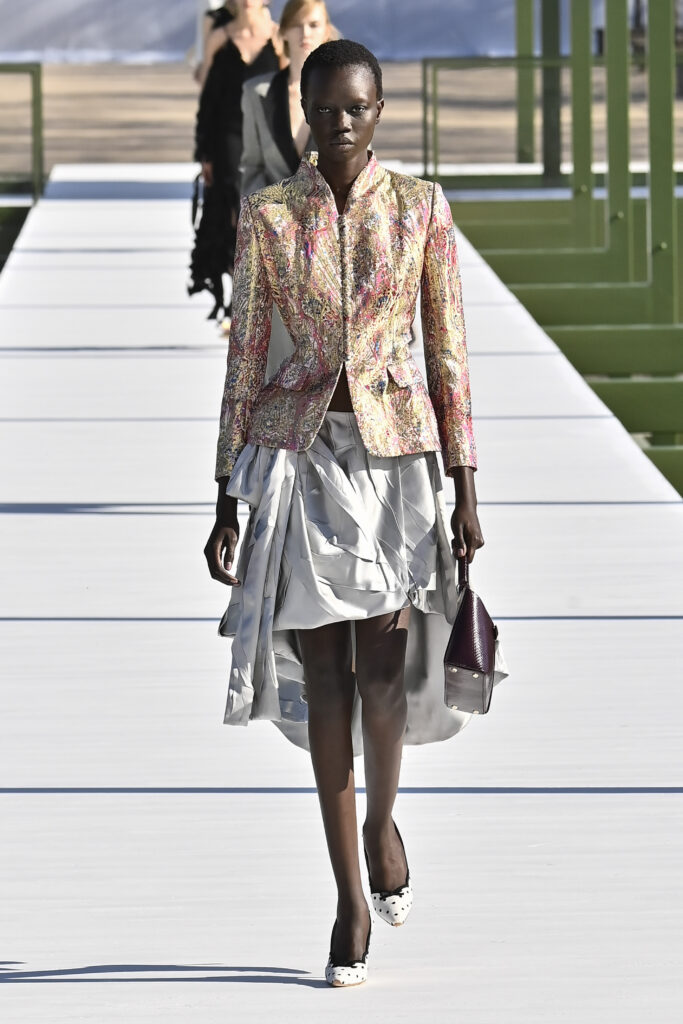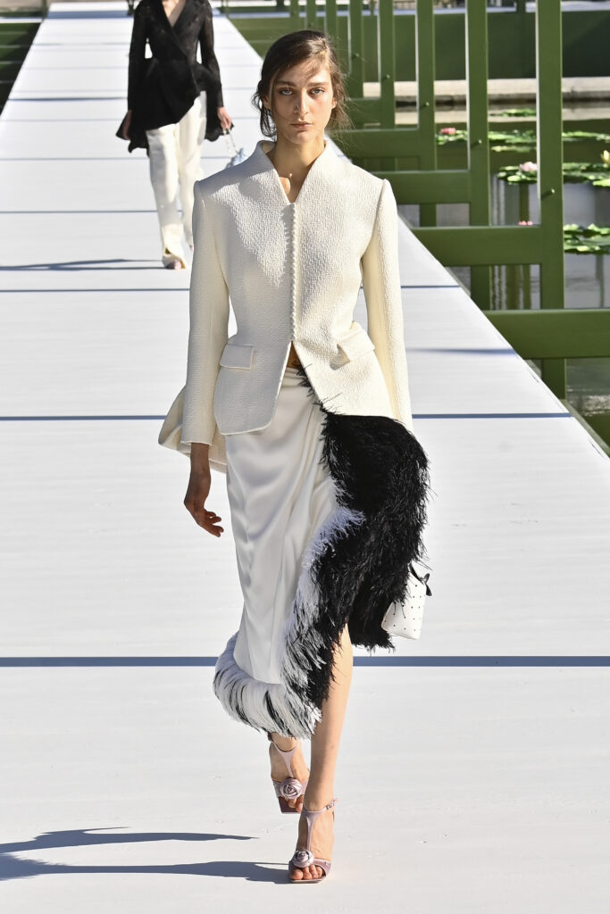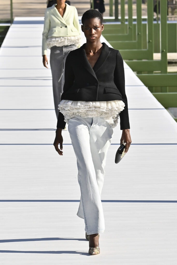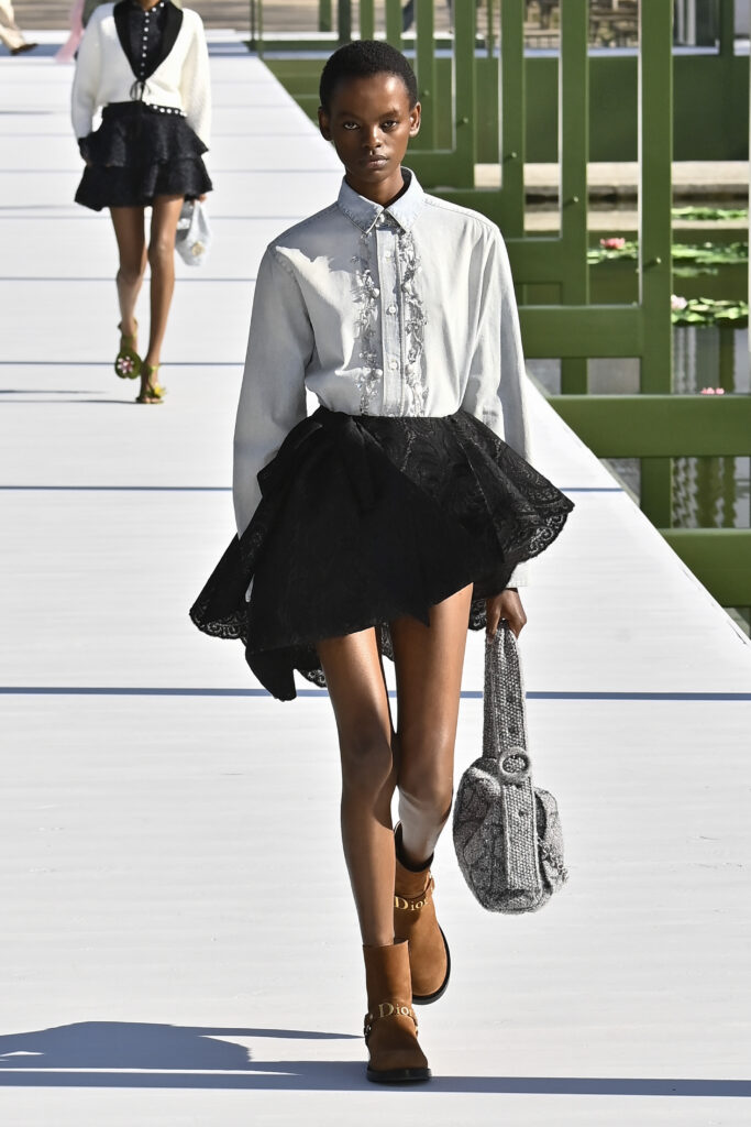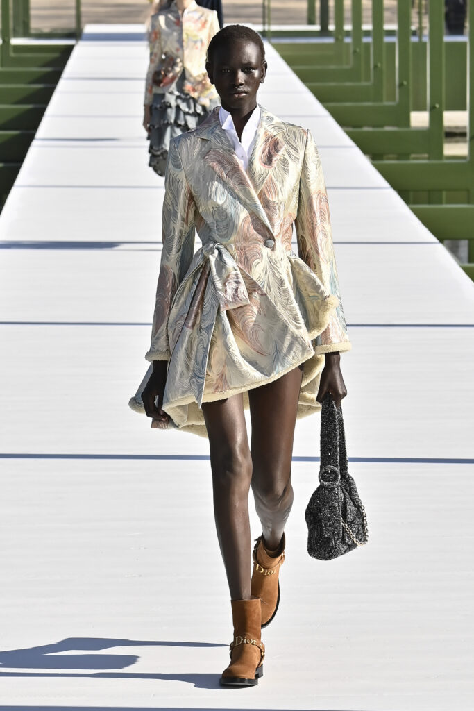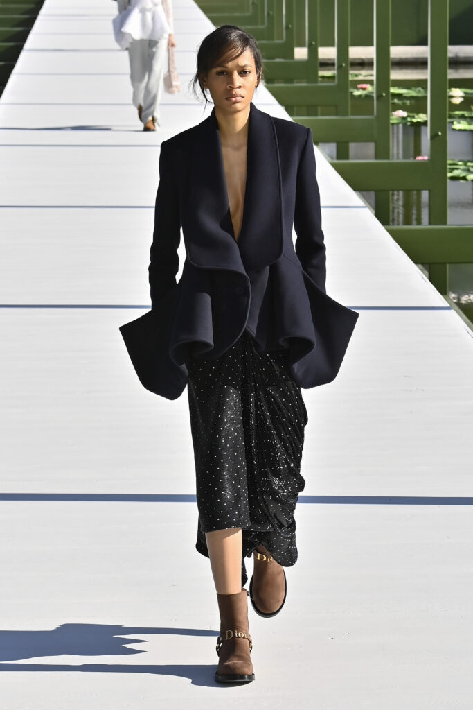 كرانيش متأرجحة، وخطوط مترنحة، وقصات بالغة التعقيد؛ تنانير قصيرة وميدي، وسترات كلها بليزر، وفساتين عارية الأكتاف، وألوانٌ تستحضر مزاج الربيع. نحن الآن في نزهة مع جوناثان أندرسون داخل حدائق التويلري الفرنسية، في عرضٍ علق عليه المدير الإبداعي بأنه لن يعرف أبدًا إن كان السيد كريستيان ديور سيحب المجموعة وأجواء العرض، لكنه يتمنى لو كان حيًا يرزق ليراها بنفسه.