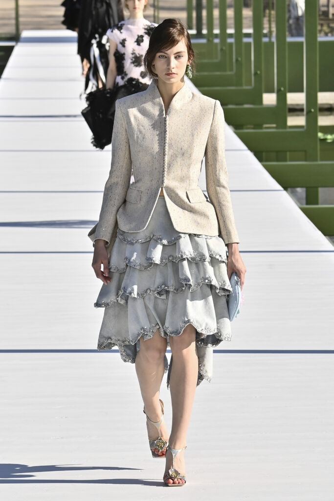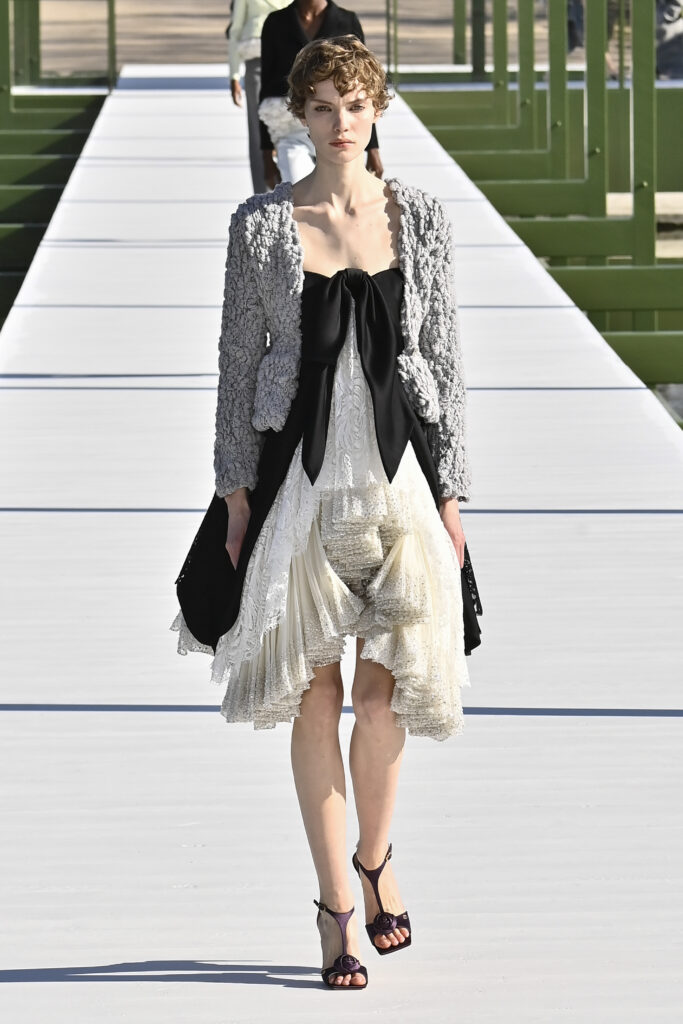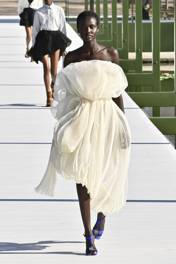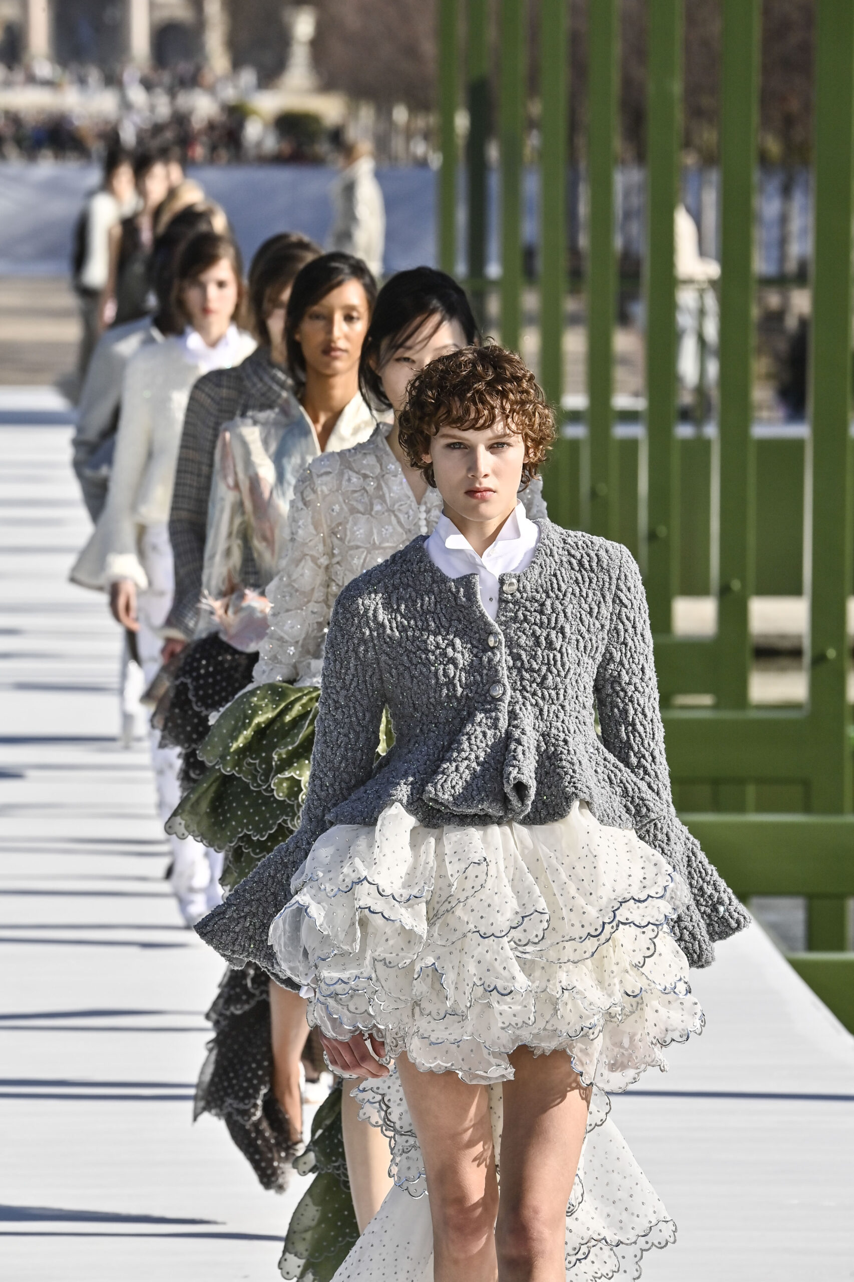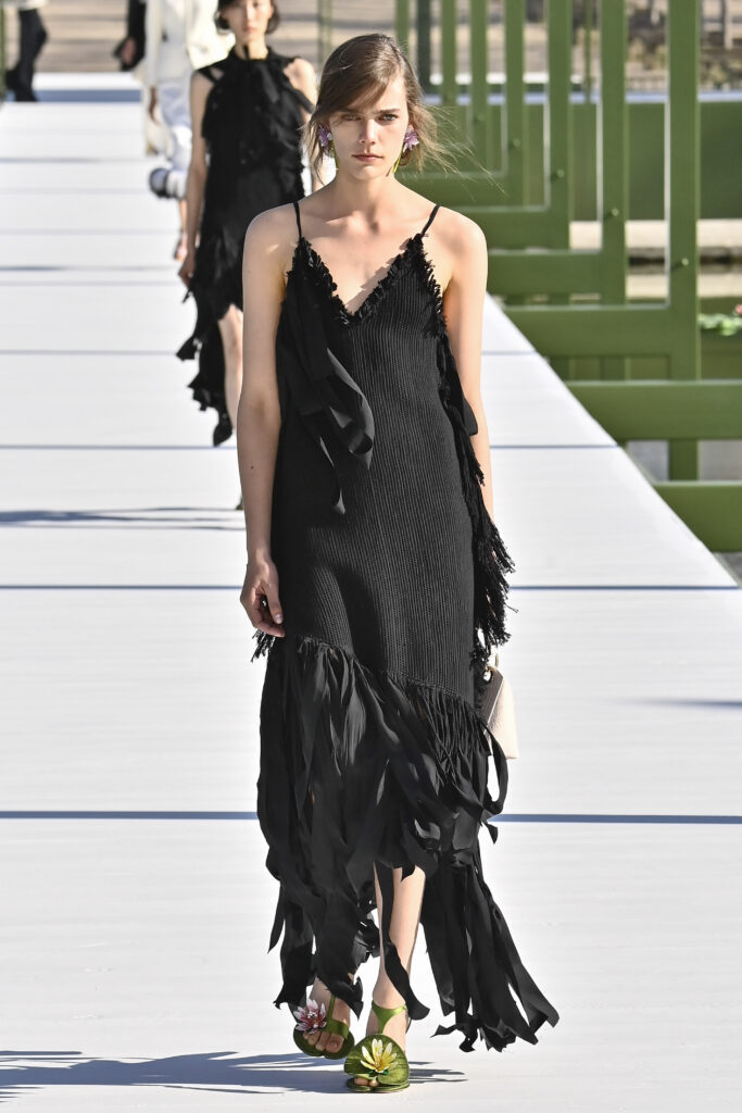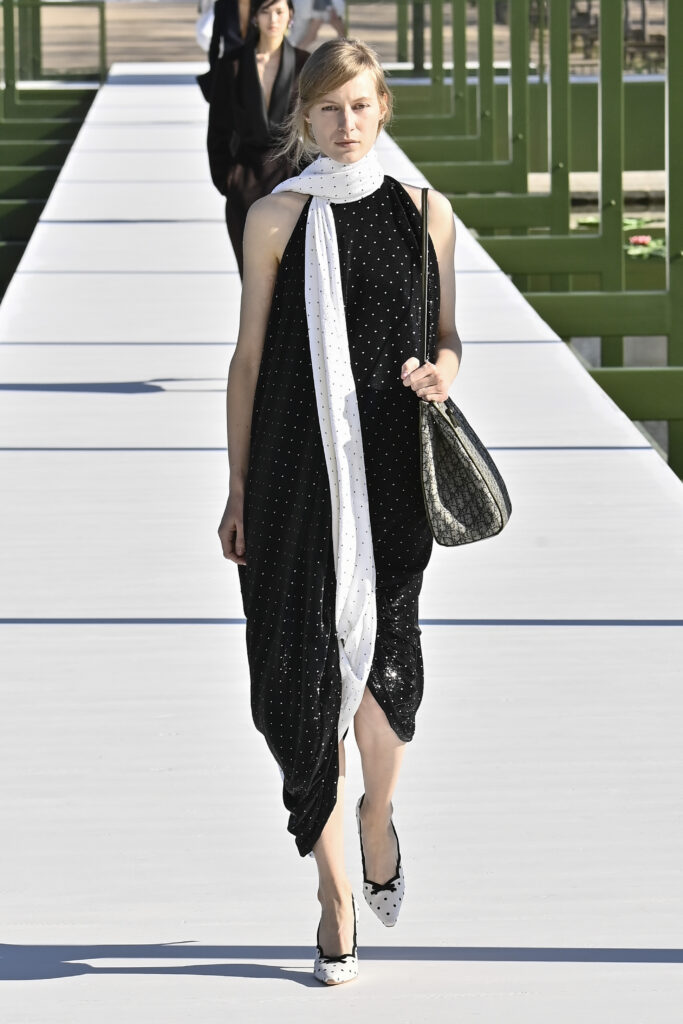 كرانيش متأرجحة، وخطوط مترنحة، وقصات بالغة التعقيد؛ تنانير قصيرة وميدي، وسترات كلها بليزر، وفساتين عارية الأكتاف، وألوانٌ تستحضر مزاج الربيع. نحن الآن في نزهة مع جوناثان أندرسون داخل حدائق التويلري الفرنسية، في عرضٍ علق عليه المدير الإبداعي بأنه لن يعرف أبدًا إن كان السيد كريستيان ديور سيحب المجموعة وأجواء العرض، لكنه يتمنى لو كان حيًا يرزق ليراها بنفسه.