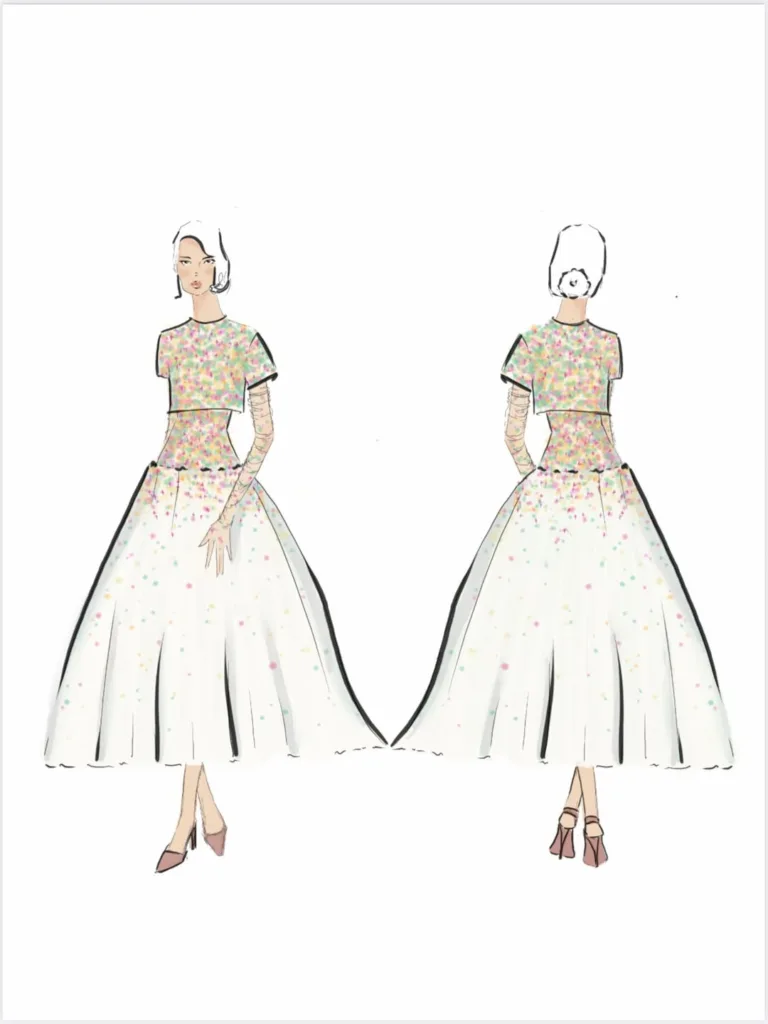 تتميز التفاصيل الدقيقة للفستان بحركة متدفقة تعكس هدوء الطبيعة وقوتها الهادئة، ما يمنح الإطلالة طابعًا أنثويًا راقيًا. أُكمل اللوك بطوق رأس مرصع بكريستالات بنفسجية وفص صدر مستوحى من أغصان الخزامى المتفتحة، بينما أُضيفت الطرحة بفصوص سواروفسكي بطريقة مدروسة، لتستحضر امتداد حدائق الخزامى وتعدد أغصانها، مانحةً توازنًا بصريًا يجمع بين الفخامة والطبيعة في تصميم واحد استثنائي.