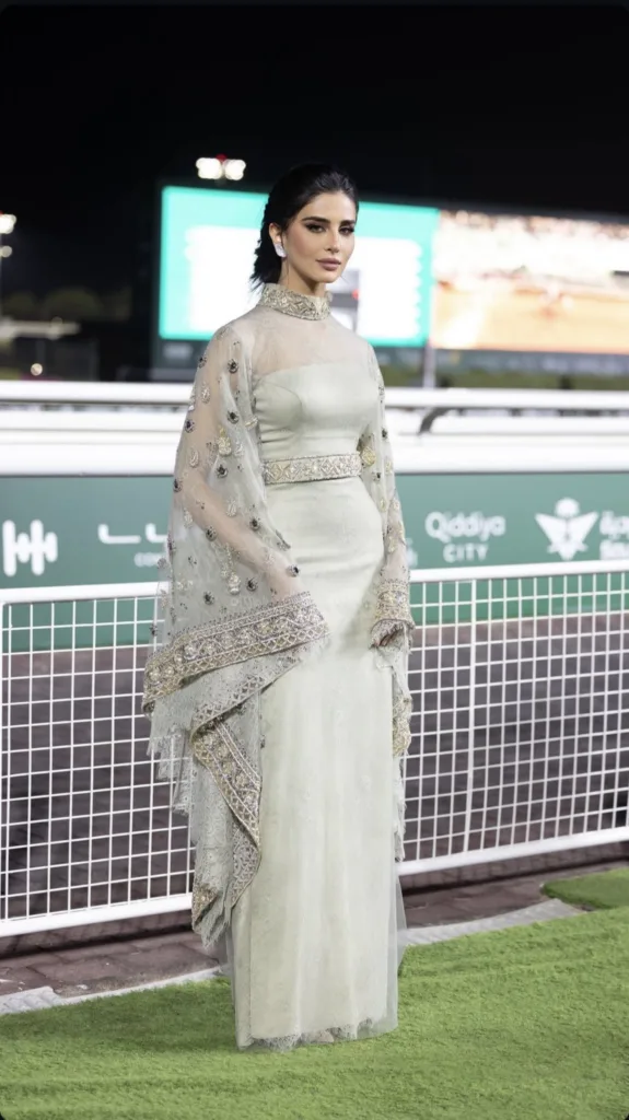 تجمع هذه الإطلالة بين الحداثة والرقي، مع لمسة ثقافية وفنية مستوحاة من التفاصيل الشعرية، لتصبح واحدة من أبرز إطلالات كأس السعودية 2026 التي تعكس الأصالة والابتكار في تصميم متكامل.